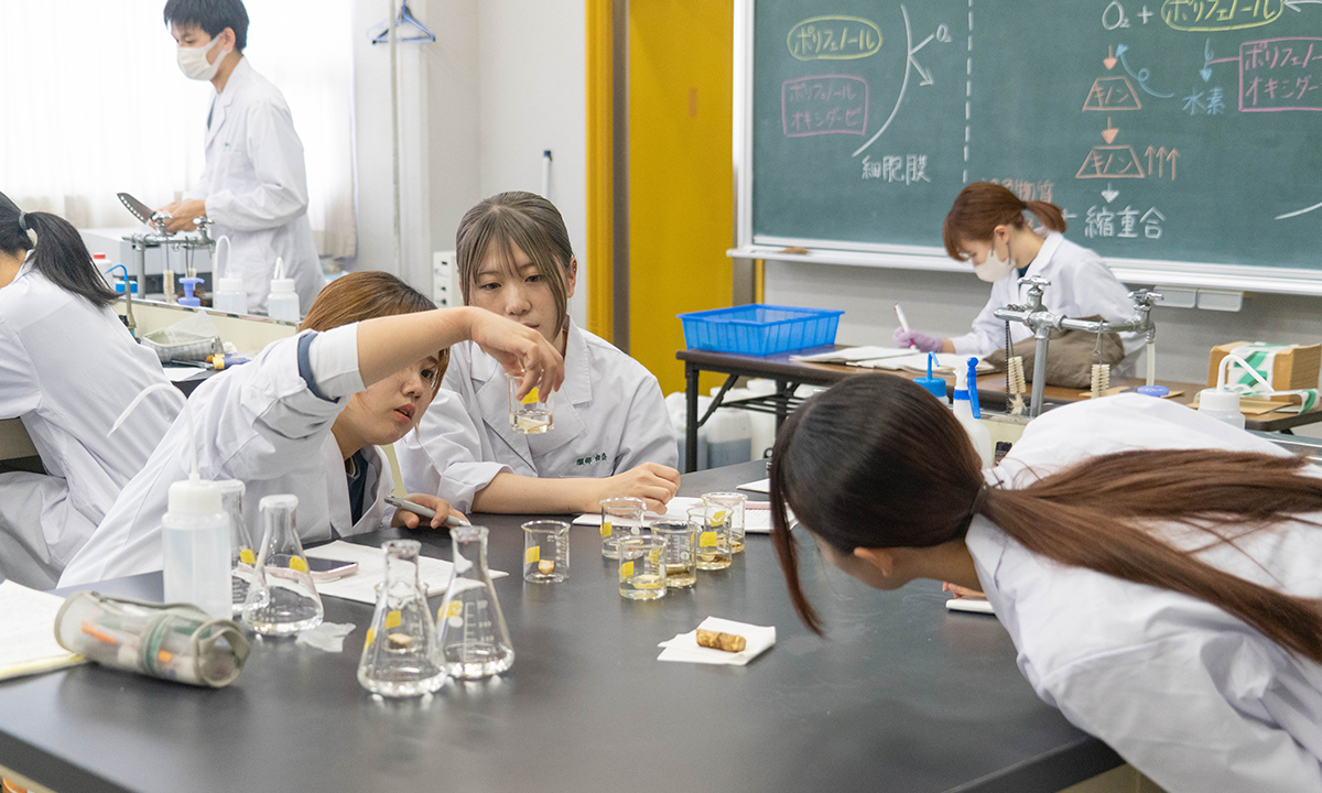 | 食べ物と健康 | 食品分析学/食品学総論/食品加工学/食品学各論/調理学/食品衛生学/食料経済学/食品学実験(食品加工学を含む)/調理学実習/応用調理学実習/食品衛生学実習 |
