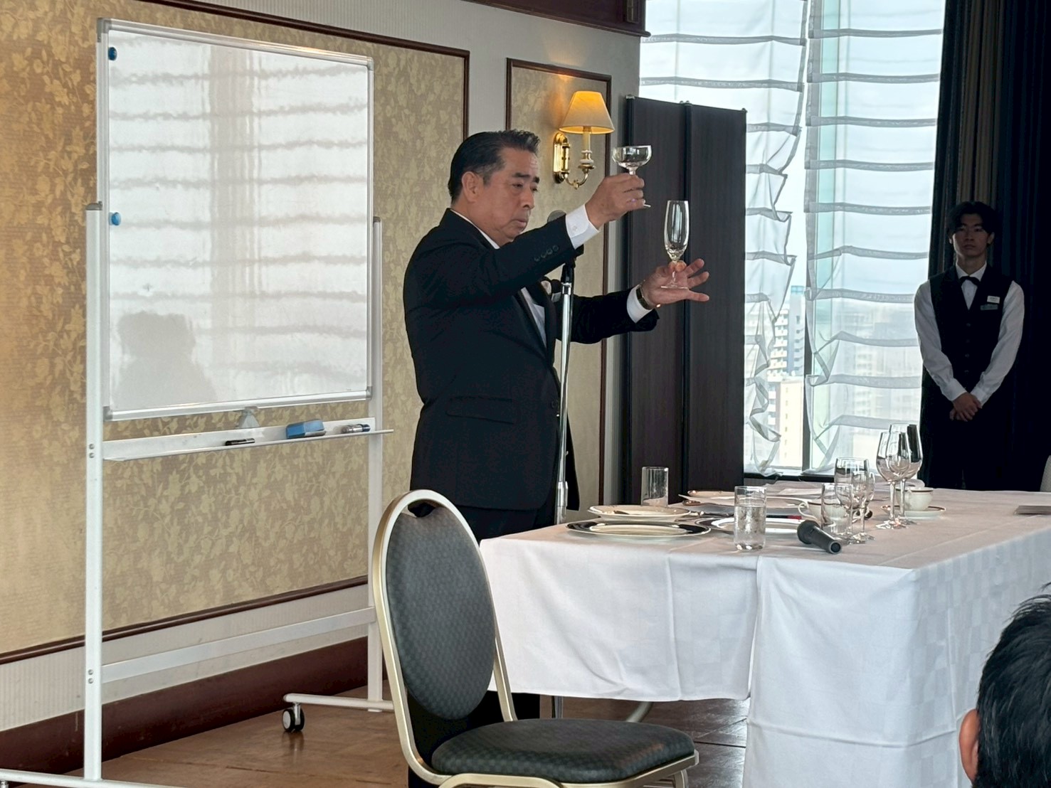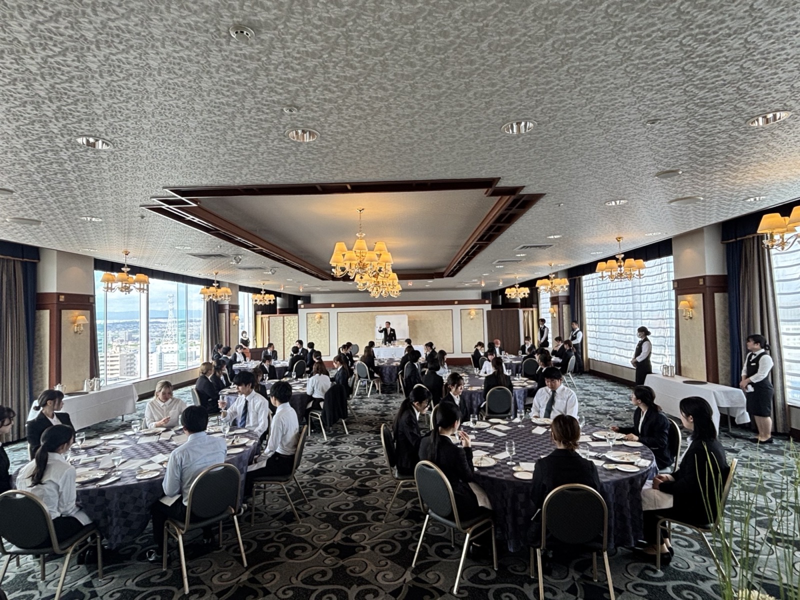 都ホテル四日市の最上階「ラ・メール」を会場に、講師の浅生先生から、洋食を中心としたテーブルマナーについて実践を交えながらご指導いただきました。着席姿勢やカトラリーの扱い方、離席時の所作に加え、和食での焼き魚の食べ方など、幅広い内容を楽しく学ぶことができました。