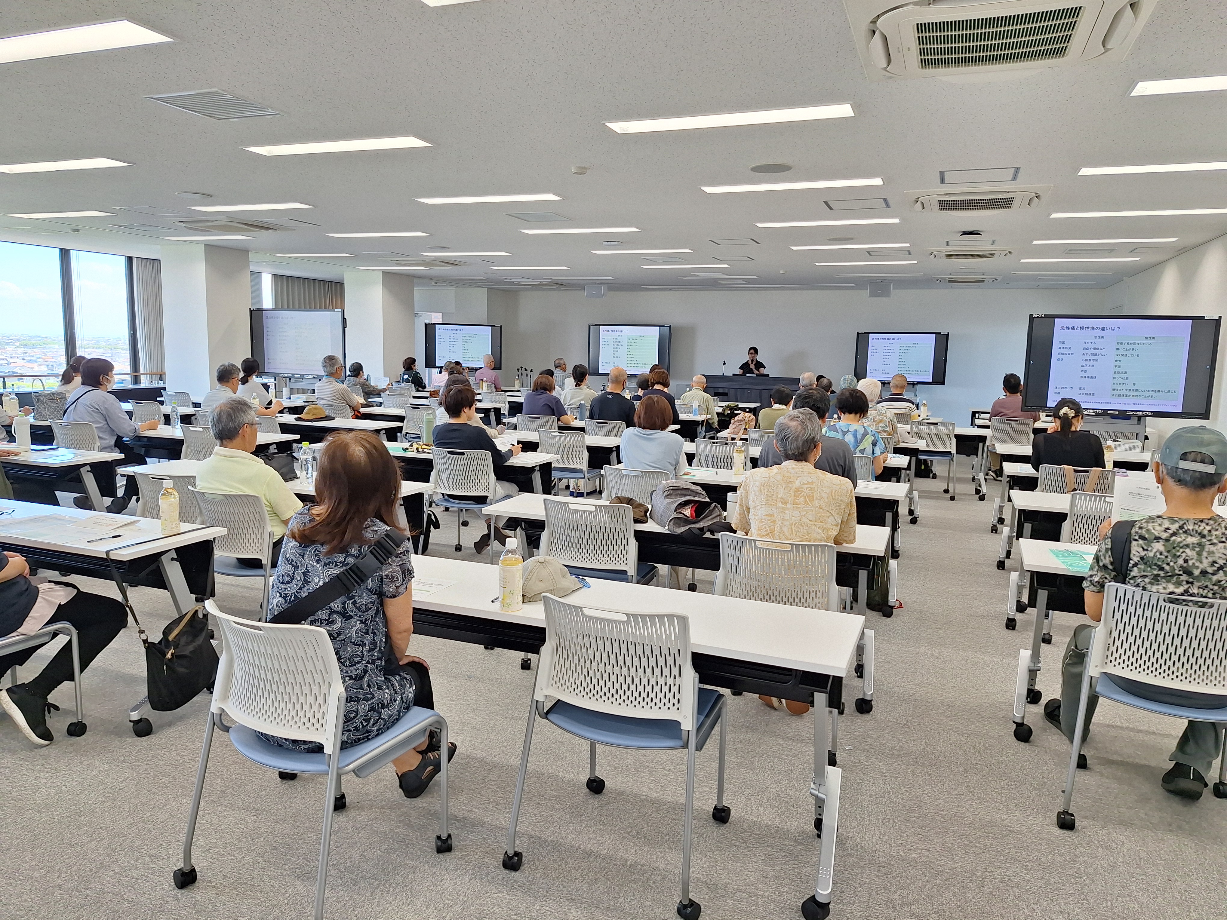7月26日(土)白子キャンパスにて、「慢性的な痛みへの対応方法:薬に頼らない痛みのコントロール方法」をテーマに、看護学科主催の市民公開講座を開催しました。公開講座は3部構成とし、老年看護学の田中和奈教授と精神看護学の萩典子教授による講義や体験演習を行いました。第1部では、慢性的な痛みへの対応方法に関する講義を行い、痛みの記録日誌を実際に参加者の方に記載をしてもらい、自身の痛みの状況を可視化することの重要性について学んでいただきました。第2部では、漸進的筋弛緩法の講義と演習を行い、第3部はアロマセラピーの活用方法についての体験演習を行いました。