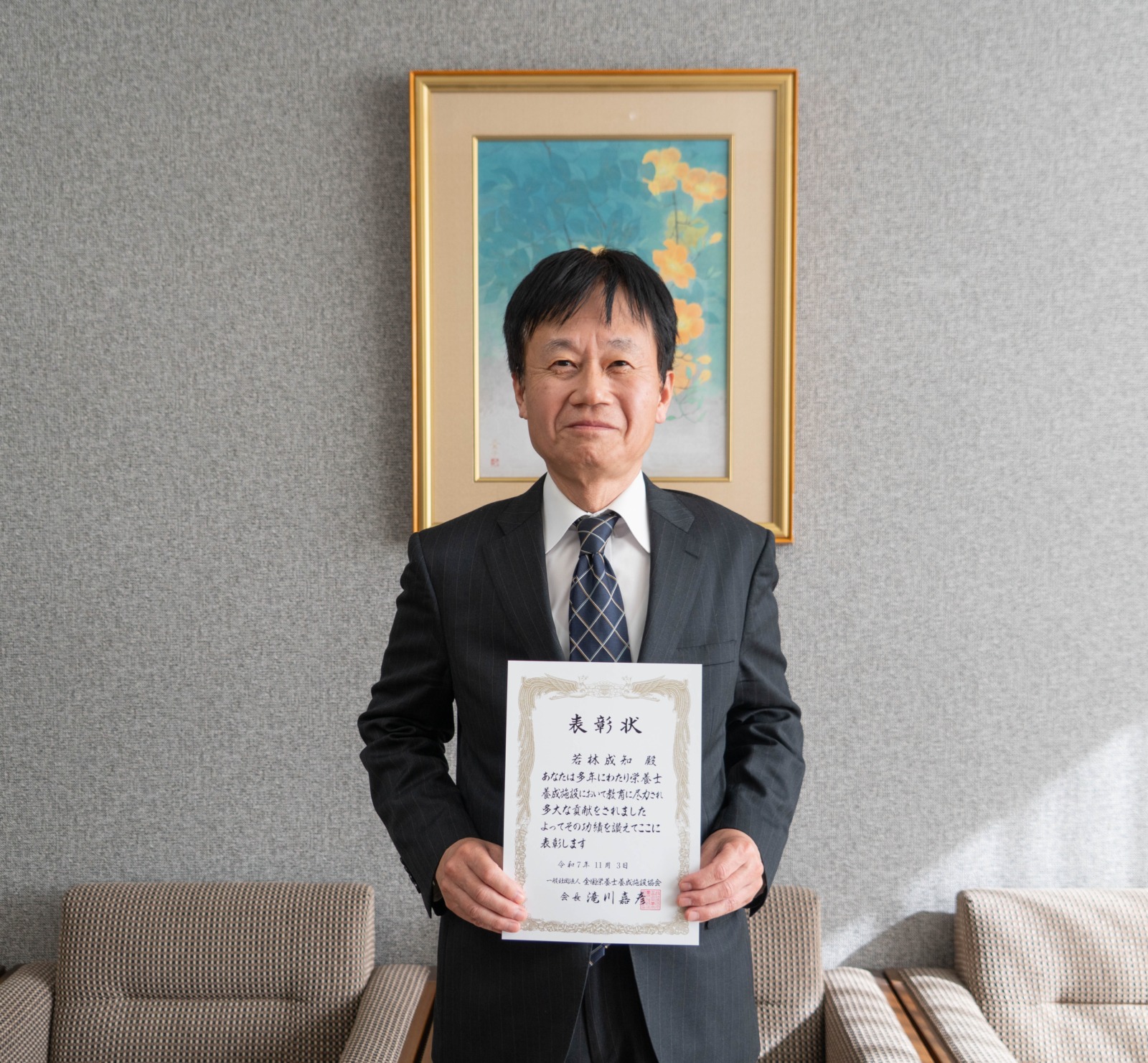 保健衛生学部医療栄養学科の若林成知教授が、全国栄養士養成施設協会より令和7年度「栄養士・管理栄養士養成施設の教員に対する会長顕彰」を受賞しました。本顕彰は、栄養士・管理栄養士の養成に関する教育・研究・社会貢献において、顕著な功績があったと認められる教員を表彰するものです。
