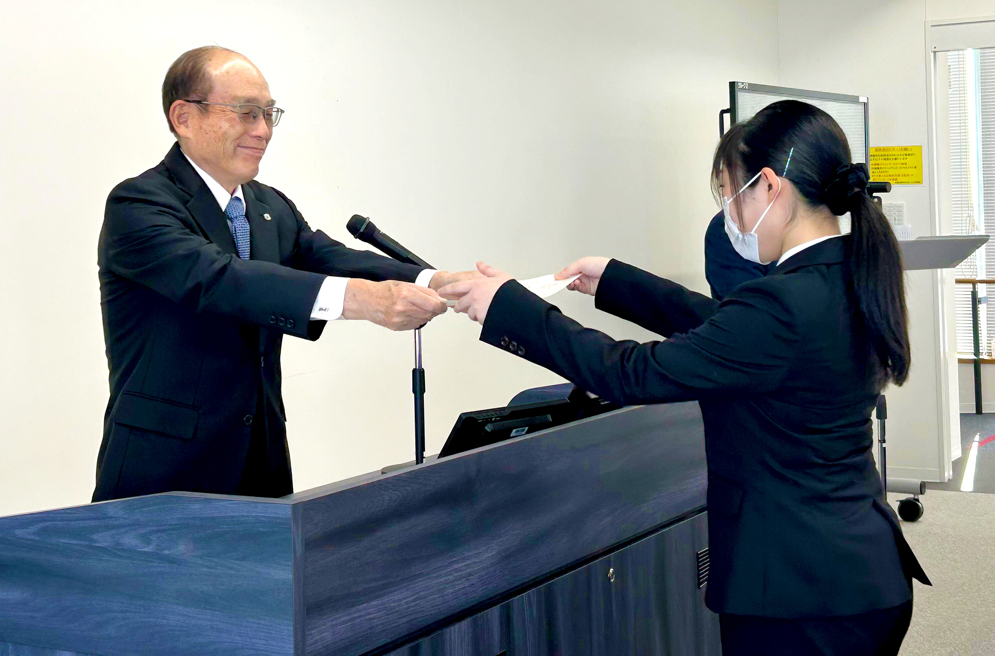令和7年度SUMS多職種連携教育Advancedコース修了式が、豊田学長をはじめ多職種連携教育委員臨席のもと、11月7日(金)11時10分より白子キャンパス1号館7階s1701室で行われました。今年度の修了者は、医療栄養学科管理栄養学専攻7名、同学科臨床検査学専攻3名、リハビリテーション学科理学療法学専攻4名、同学科作業療法学専攻7名、医療福祉学科臨床心理学専攻1名、救急救命学科2名、薬学科7名、看護学科1名の総計32名で、修了式に参加いただきました22名に豊田学長から直接修了証が授与されました。