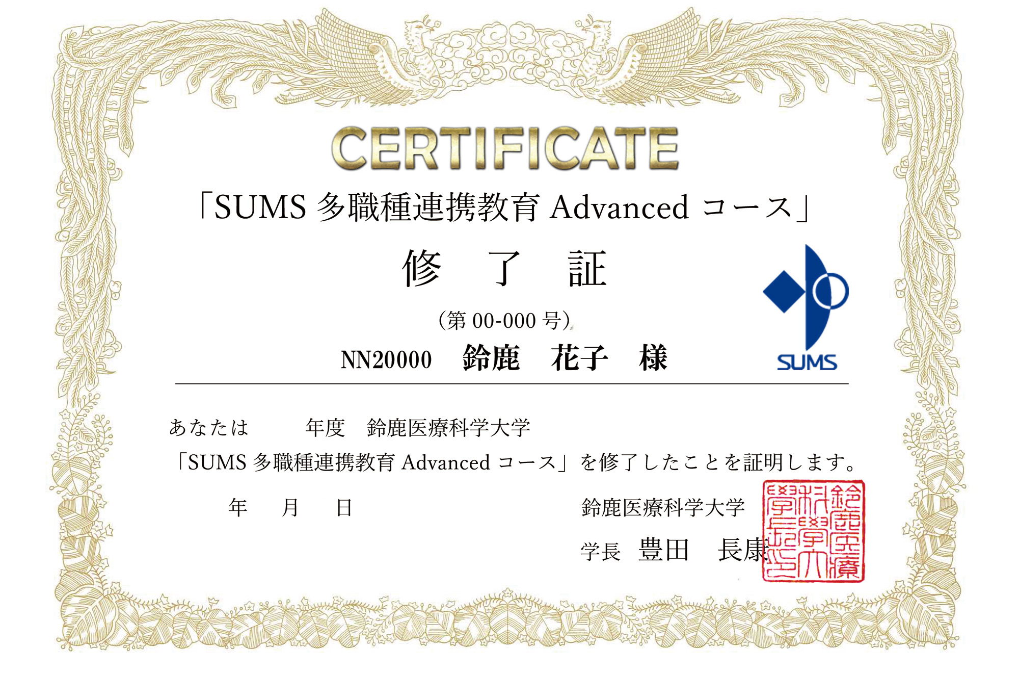 多職種連携教育Advancedコース修了証の授与は今年で3年目を迎え、これまでの修了者は95名となりました。Basicコース修了者が3年間で283名であったことから、「事例で学ぶ多職種連携」受講者の約1/3が上位科目の「実践で学ぶ多職種連携」も受講され、多職種連携教育ピラミッドの頂点に到達されました。自らの意志で多職種連携に関する学びを深めたことは、将来の臨床にきっと役立つと思います。