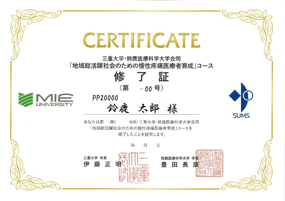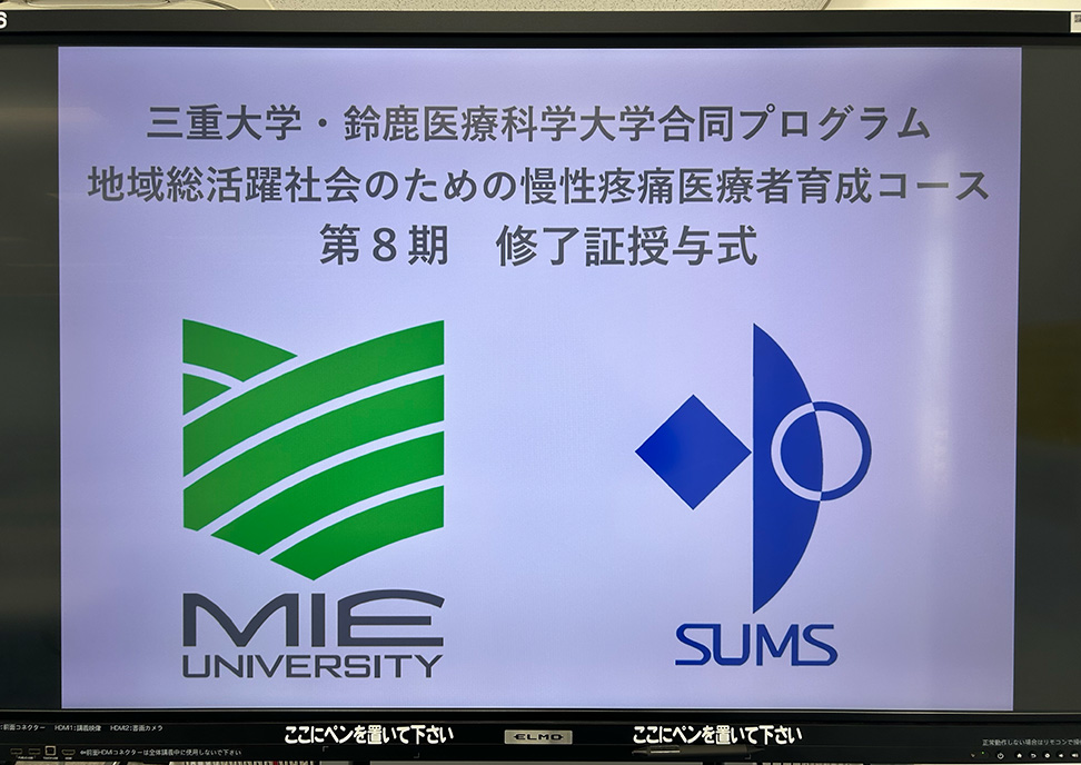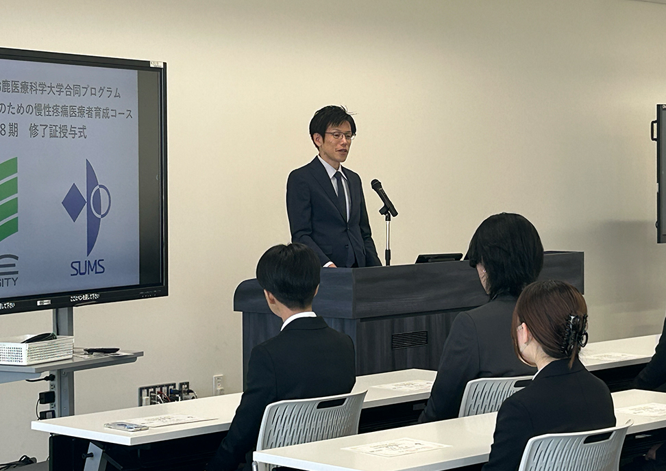 地域総活躍社会のための慢性疼痛医療者育成コース修了式が、碧鈴祭前日の11月7日(金)1限に白子キャンパスs1701室で執り行われました。修了者36名のうち18名が参加し、修了証が授与されました。