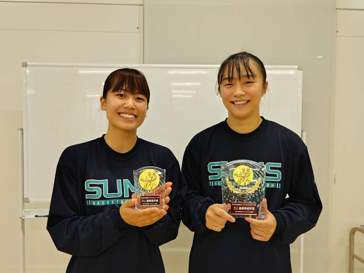 この大会を通じて、最優秀選手賞と優秀選手賞にそれぞれ本学から選出され、下記の選手が表彰を受けました。 また、惜しくも得点王は逃したものの、医療栄養学科1年の瀬利心花さんが得点ランキングで2位と健闘しました。