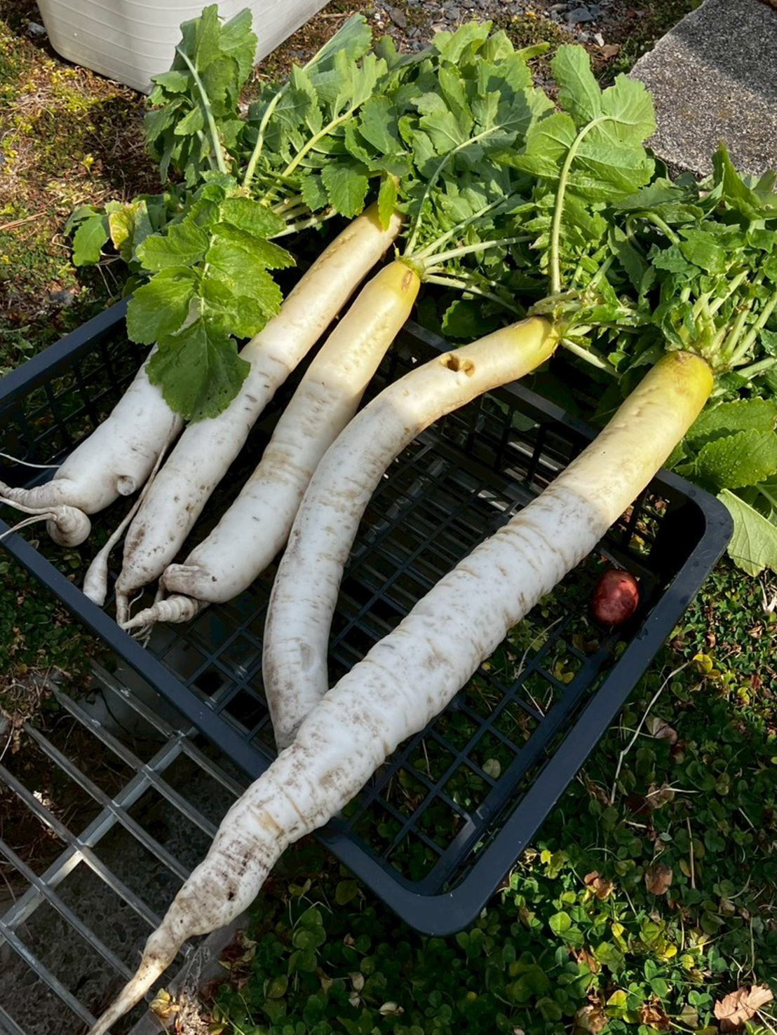 昨年2025年2月1日にも大根の収穫を行いましたが、すべての大根を収穫しないで、葉と根が大きく育っている2本を「種採り」用に残し、2025年10月に種採りをして種まきをしました。今夏も2回目の種採りをして、自家採種を重ねていきたいと思います。