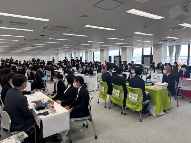 当日は午前・午後の部あわせて55法人に参加いただきました。学生は4年生を中心に73名が参加し、各法人の特徴や業務内容について説明を受けました。4年生中心の合同企業フェアは東海地方で初めての開催となり、学生にとっては進路の選択肢を広げ、将来の目標を具体化する貴重な機会となりました。