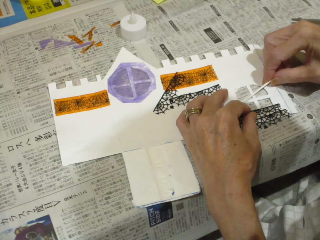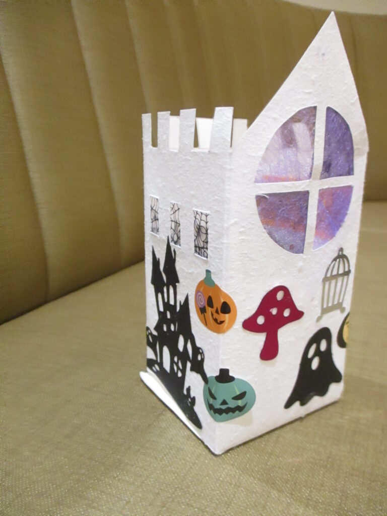 本日は牛乳パックでハロウィンのランプシェードを作りました。
